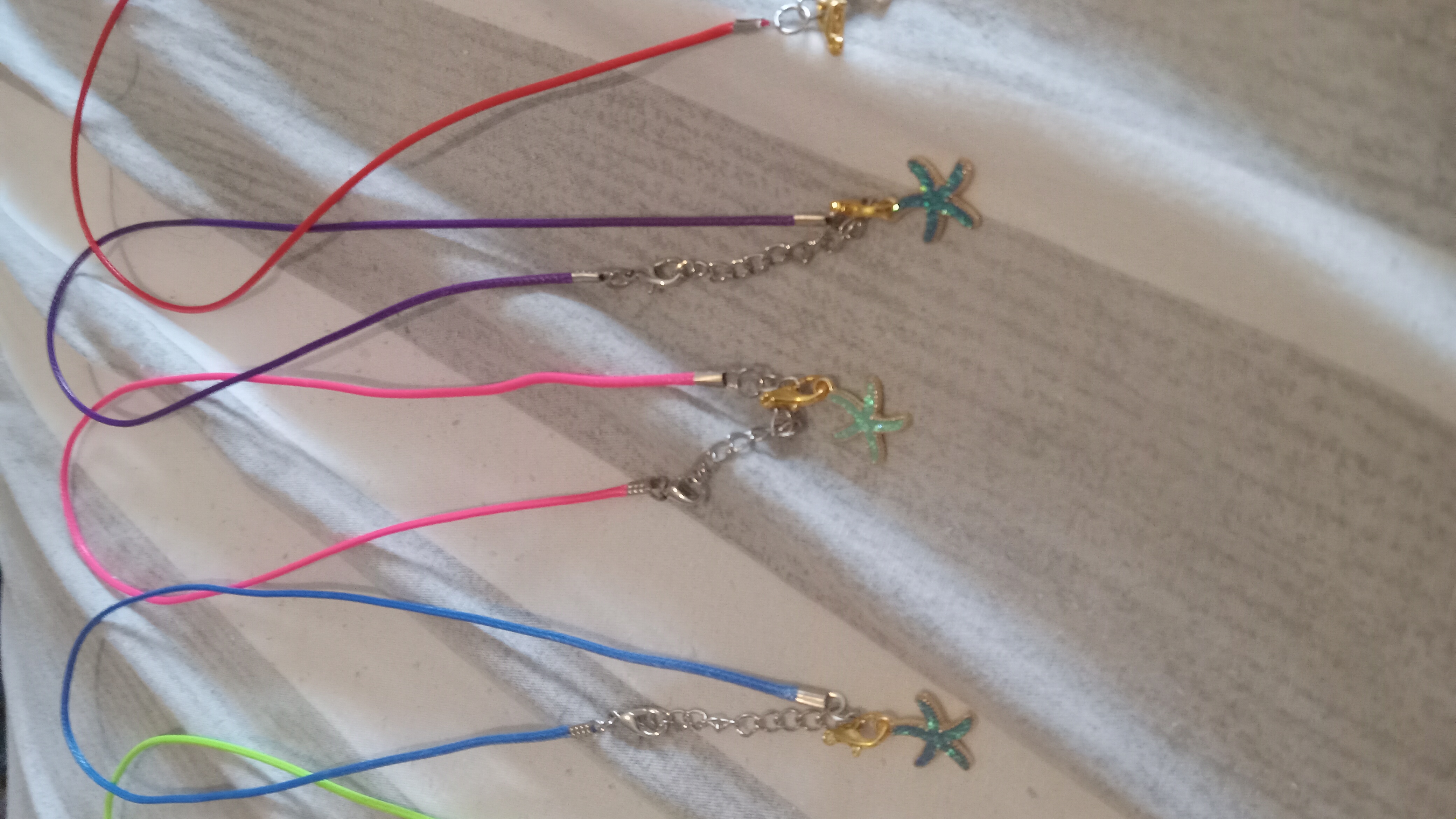 Starfish necklaces in a variety of colors for eight dollars apiece.